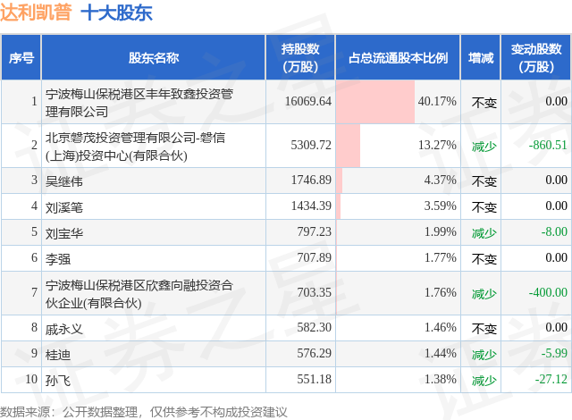 根据达利凯普2025年中报公布的十大股东详情如下: